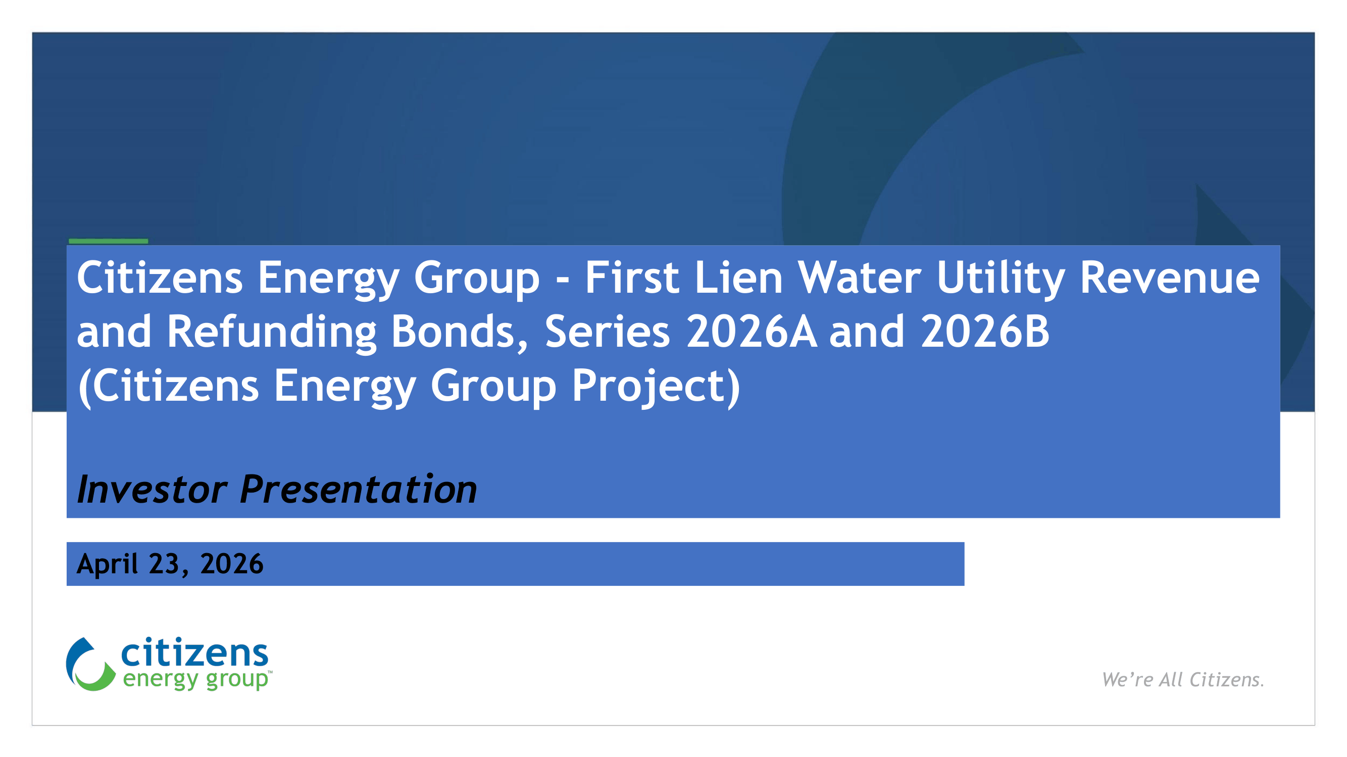 Citizens Energy Group - First Lien Water Utility Revenue and Refunding Bonds, Series 2026A and 2026B (Citizens Energy Group Project)